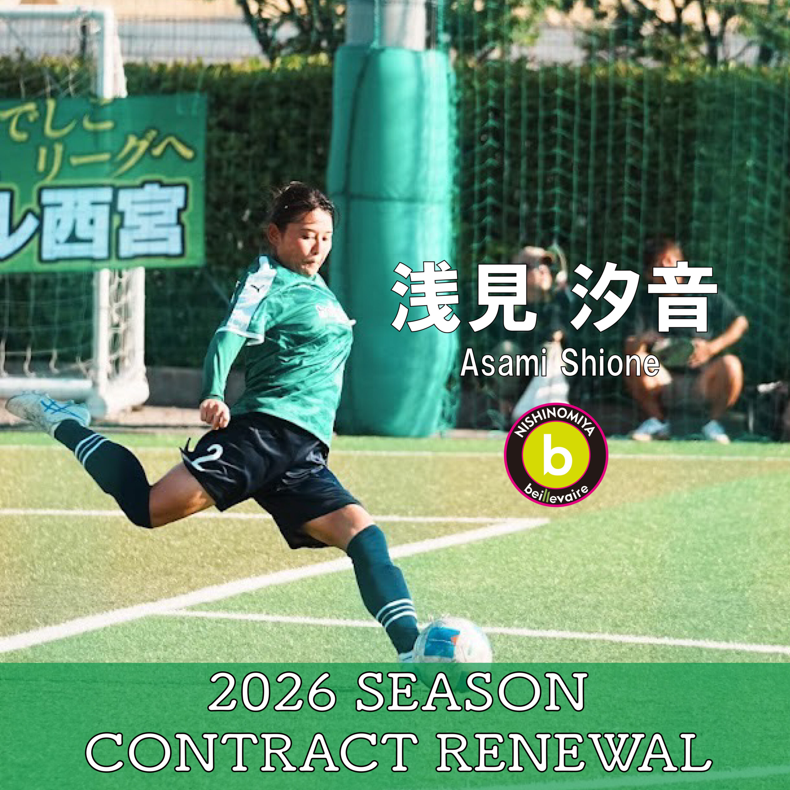 この度、浅見汐音選手と契約を更新し、2026年シーズンもbeillevaire西宮でプレーをすることが決まりましたのでお知らせします。