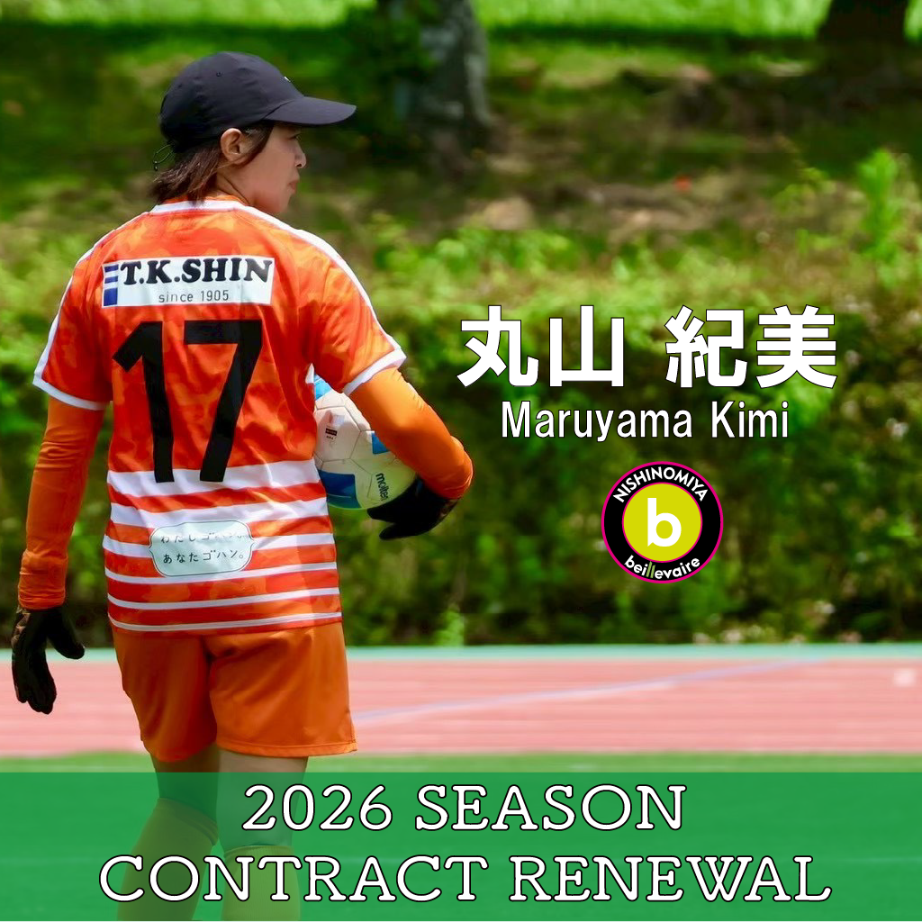 この度、丸山紀美選手と契約を更新し、2026年シーズンもbeillevaire西宮でプレーをすることが決まりましたのでお知らせします。